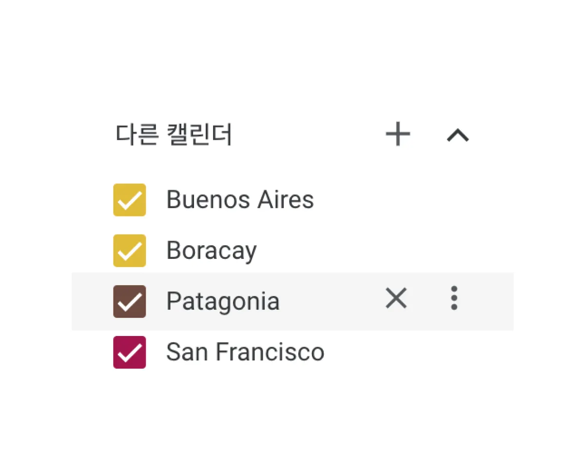 + Google 캘린더 화면 좌측 하단 다른 캘린더 영역에서 리소스 구독 현황을 확인할 수 있습니다.