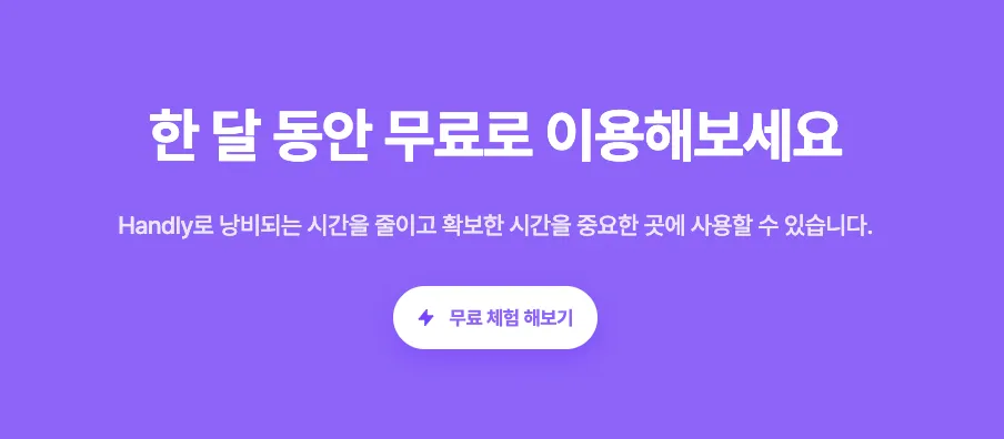 handly는 가입 후 30일의 무료 체험기간을 제공합니다.