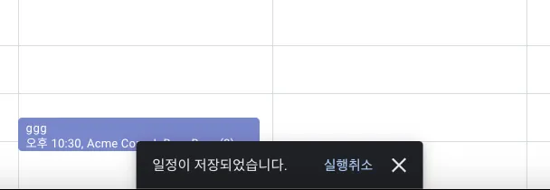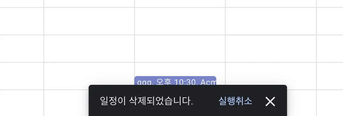 해당 반복 일정이 삭제 되면 하단에 삭제 완료 팝업이 출력되며, 핸들리에서도 반복 일정이 삭제된 것을 확인 할 수 있습니다.