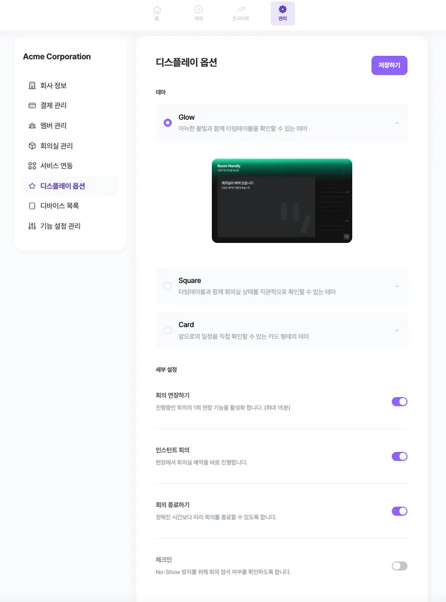 * 이외에도 회의 연장하기, 회의 종료하기, 체크인 등과 같은 세부 기능도 커스텀하여 사용이 가능합니다.