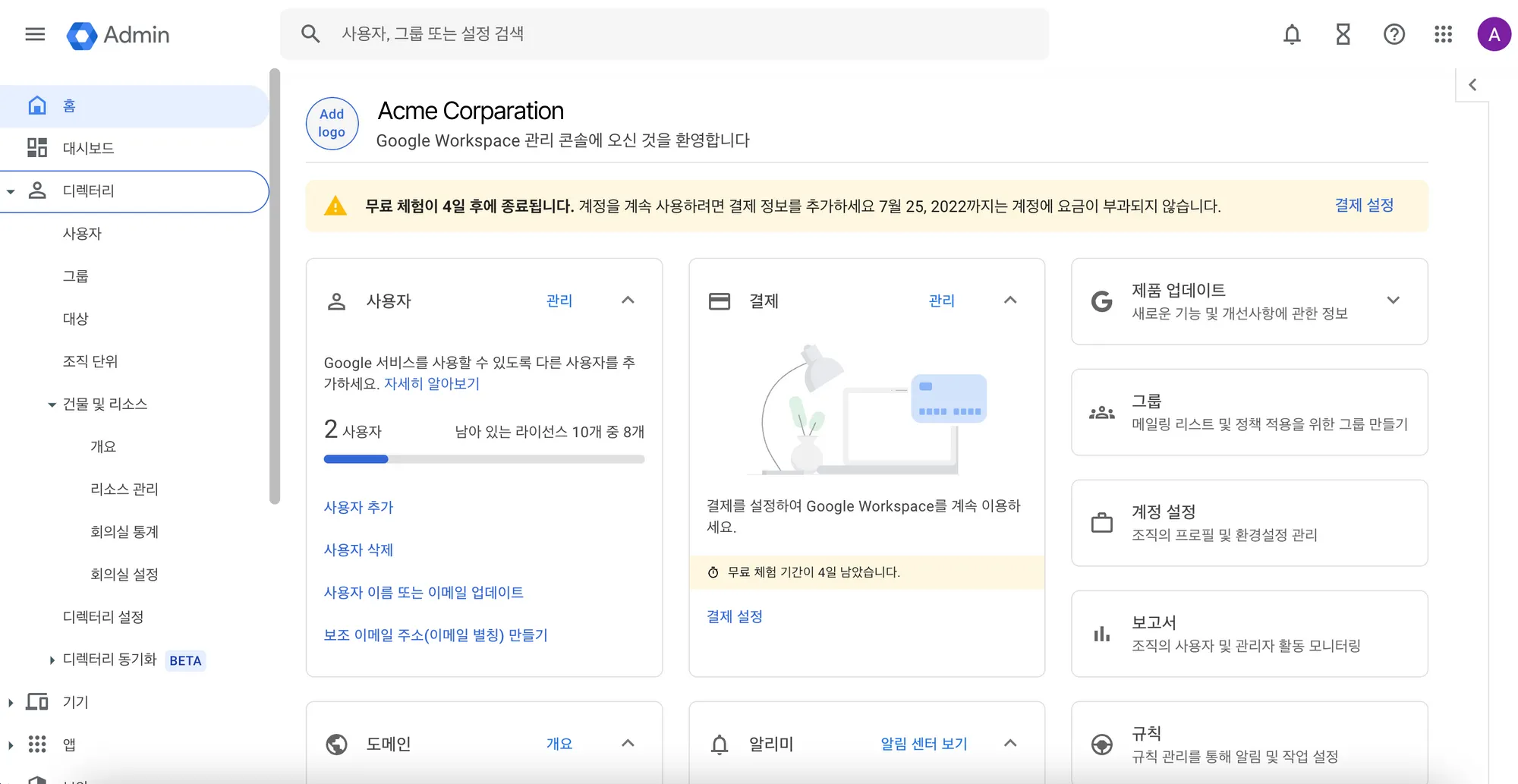Google Workspace에 리소스 회의실을 만들기 전, Google Workspace Admin 계정이 필요합니다.