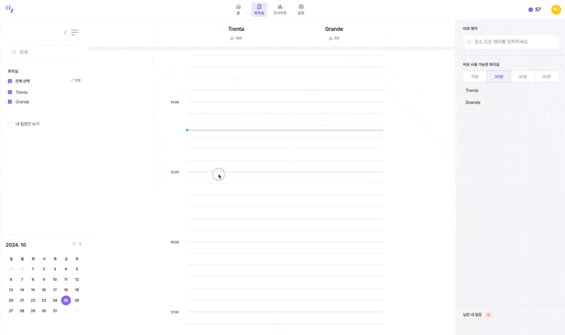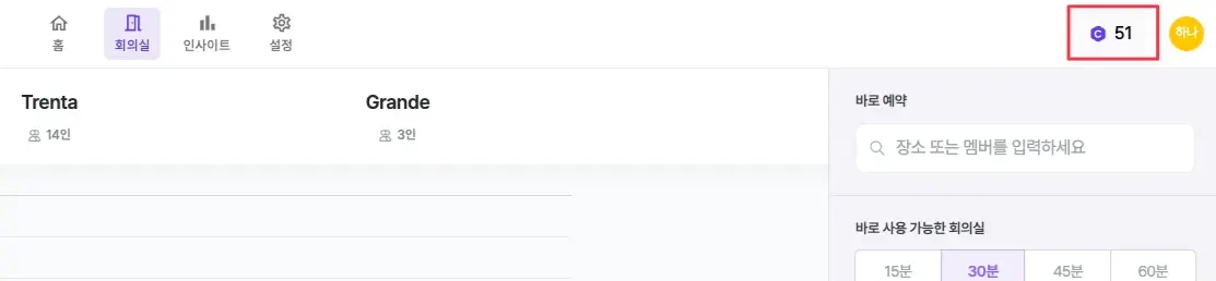 회의실을 예약할 때 일정 개설자의 크레딧이 차감됩니다.