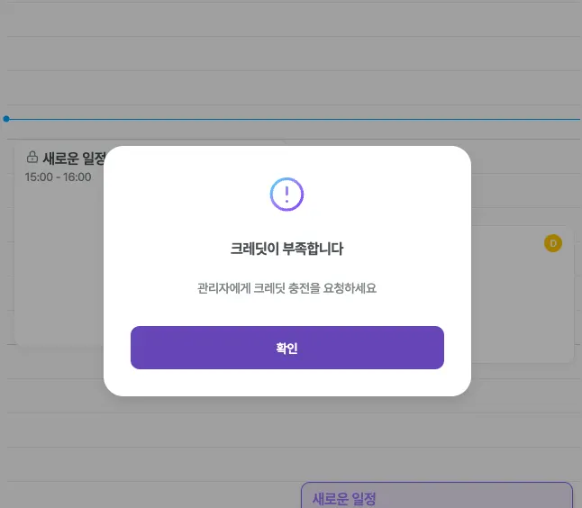 관리자에게 크레딧 그룹 지정 혹은 크레딧 충전을 요청해주세요.