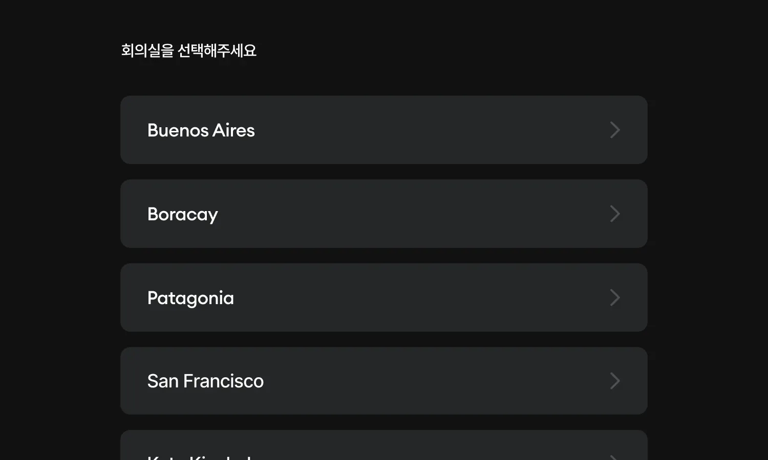 연결 코드 입력 후 디스플레이와 연결할 회의실을 선택해주세요.