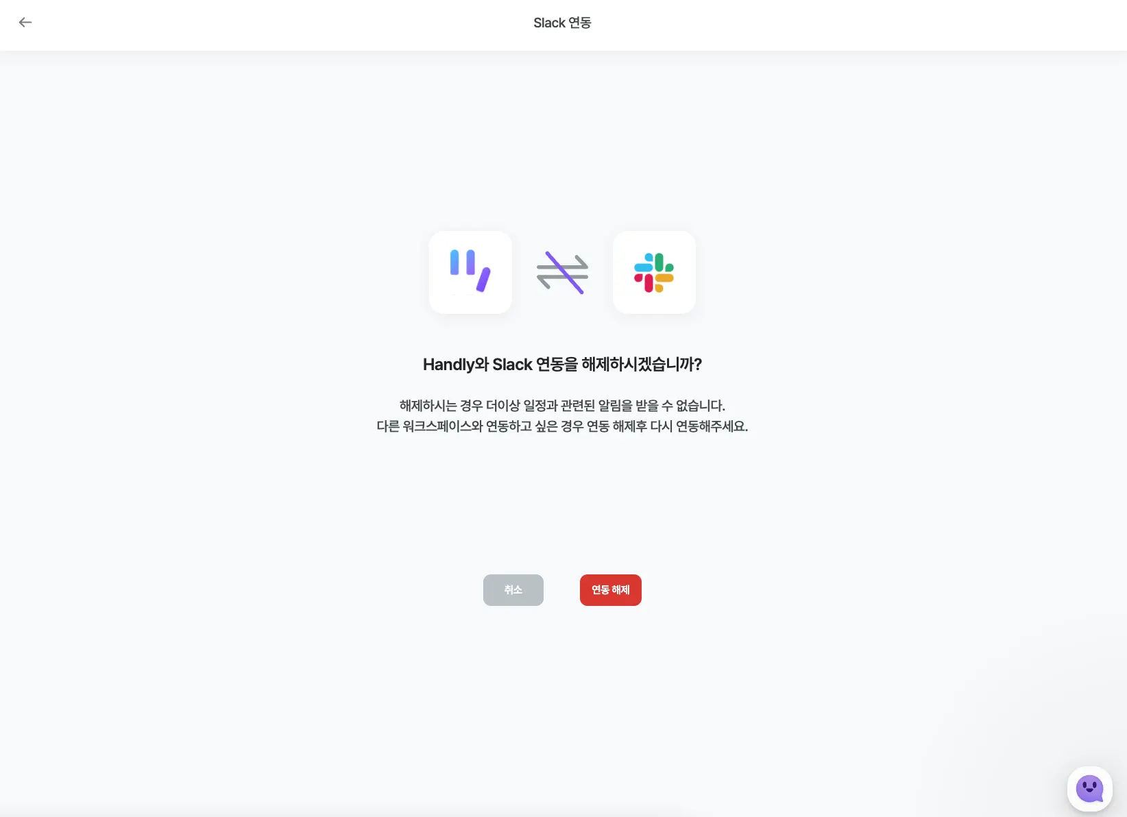 * 연동 해제시 모든 Handly 알림 데이터가 초기화되니 주의하시기 바랍니다.