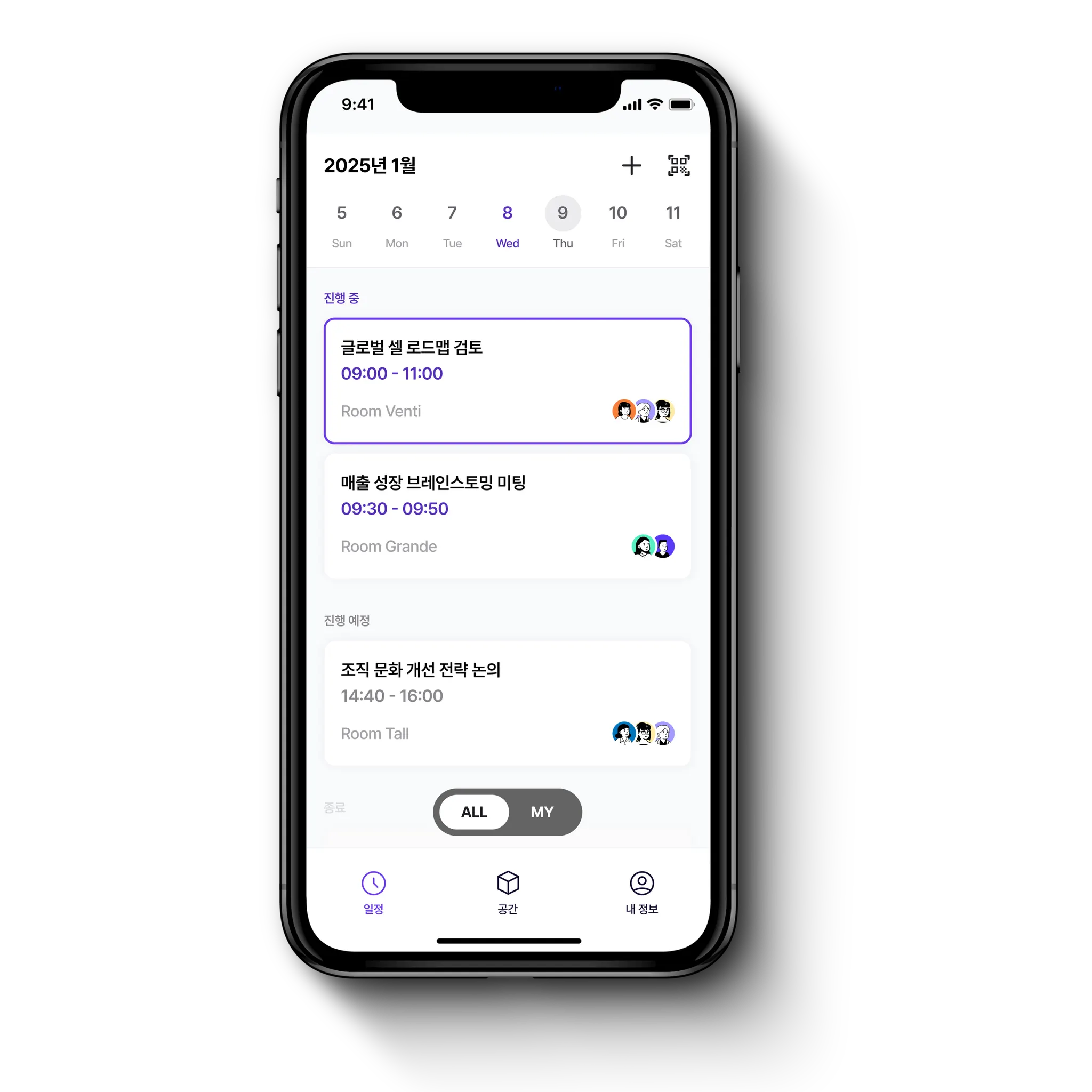 이번 업데이트를 통해 일정 조회, 등록, 수정, 삭제 기능이 더욱 직관적이고 간편해졌으며, 공간의 오늘 일정을 한눈에 확인할 수 있습니다.