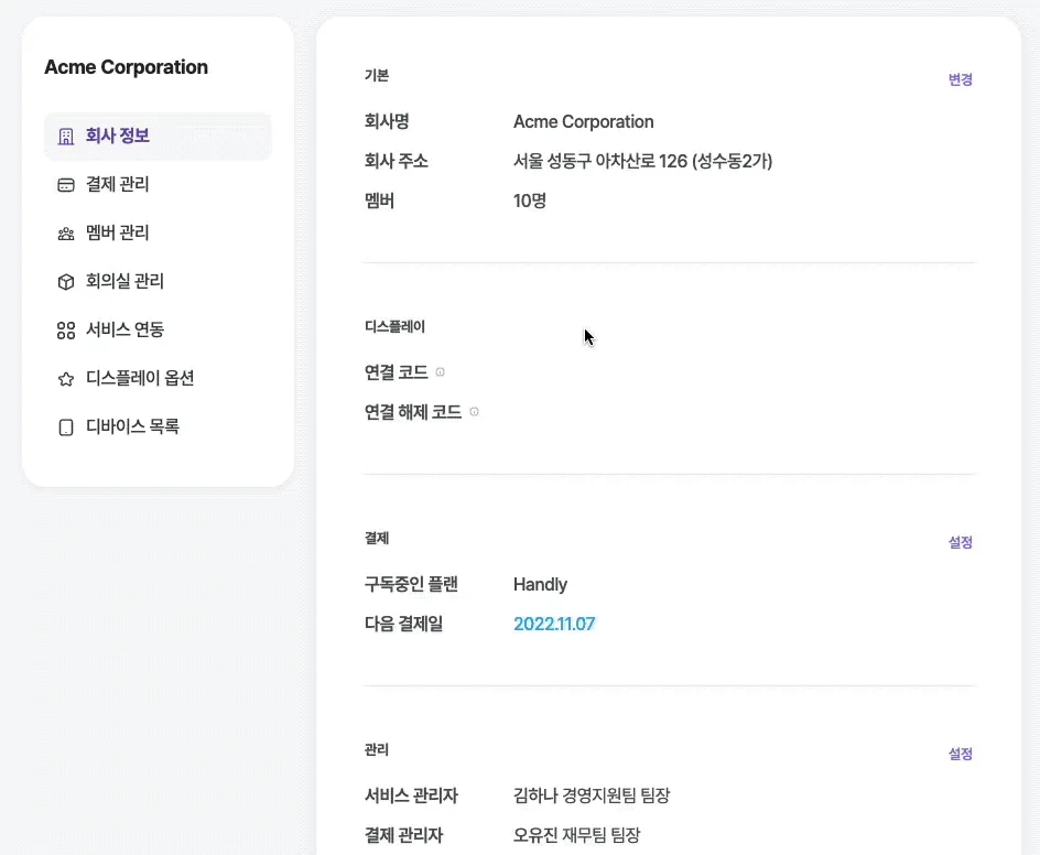 관리 > 회사 정보로 이동합니다.