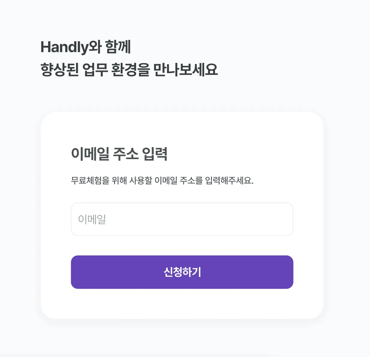 Handly 메일을 선택해 ‘Handly 가입하기’ 버튼을 선택합니다.