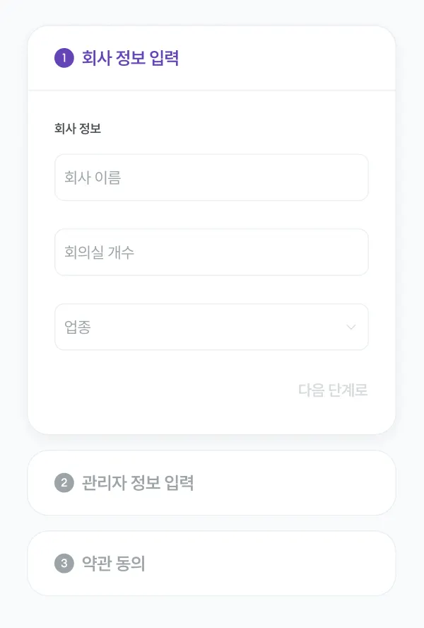 회사 정보를 입력 후 ‘다음 단계로’ 버튼을 선택합니다.