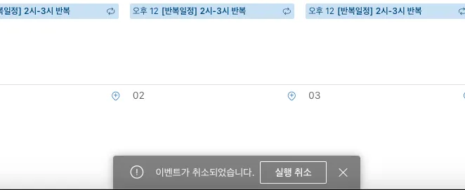 이때, [취소] 버튼을 누르면 일정 삭제가 취소됩니다.